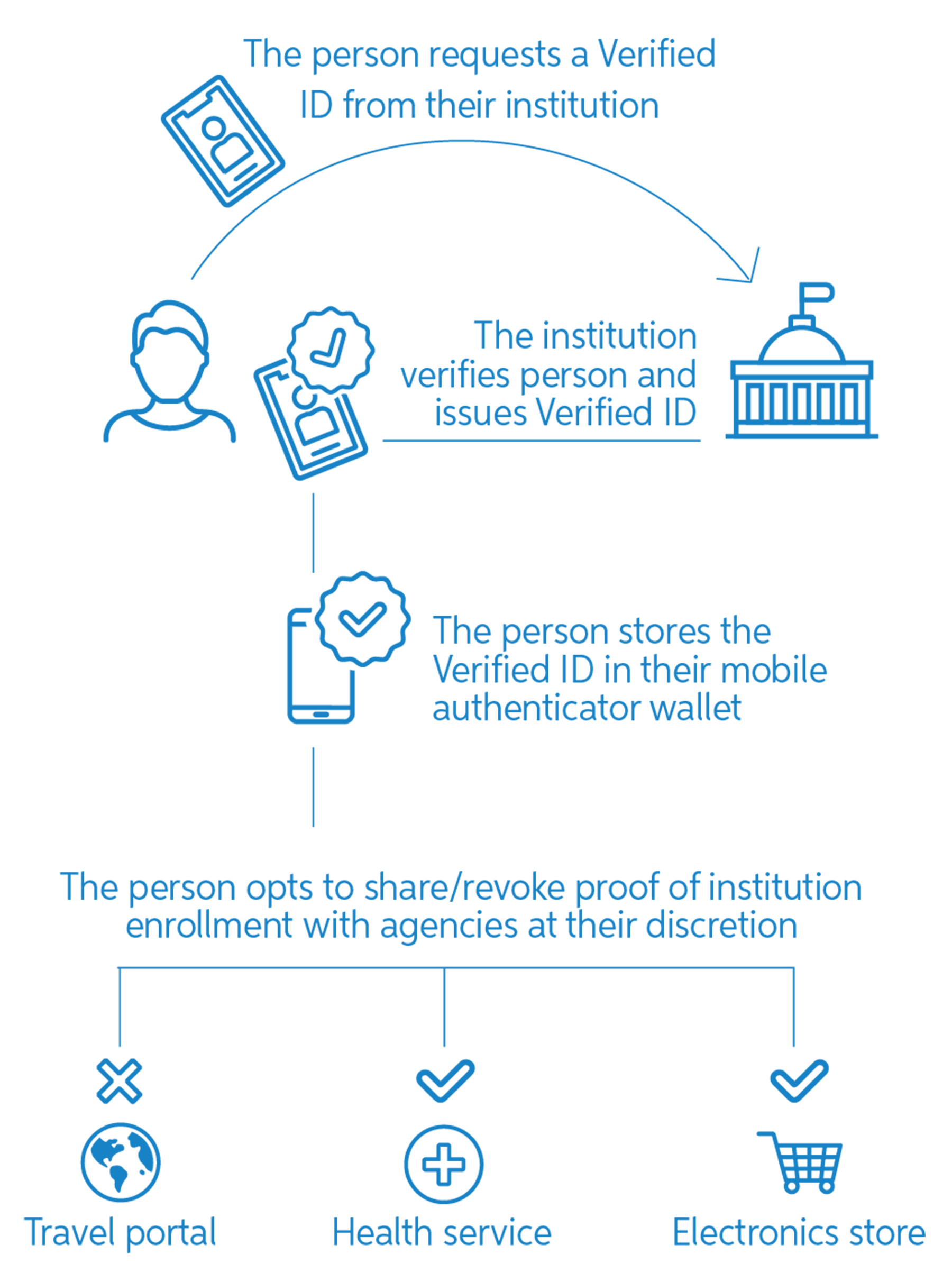 deploy verifiable identity across your organization in hours, not weeks. It’s stored in your digital wallet, eliminating redundant registration and verification processes.
